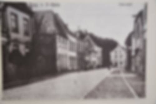 Da die ehemalige jüdische Synagoge 1945 bei einem Bombenangriff zerstört wurde, erinnern heute nur noch zwei Gedenktafeln an dem Privathaus in der Oberstadt 16 an das ursprüngliche Gebäude. Der ursprüngliche Bau wurde 1840 errichtet und bot rund 75 Personen Platz. Es war ein zweistöckiger verputzter Bau mit einem mit schwarzen Pfannen gedecktem Walmdach. Einen dunkelgrünen Anstrich hatten die Fenster, Türen und die Dachrinne. Das Synagogengebäude fiel durch die hohen, schmalen Rundbogenfenster sowie durch die rundbogige Eingangstüre auf.